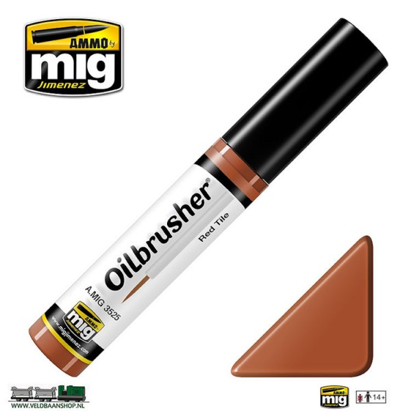 MIG 3525 MIG Jimenez Oilbrusher red tile is de perfecte kleur en essentiële kleur voor voertuigen en diorama's met puin en roodachtige aarde. Deze kleur is ook handig voor structuren van terracotta of baksteen.
